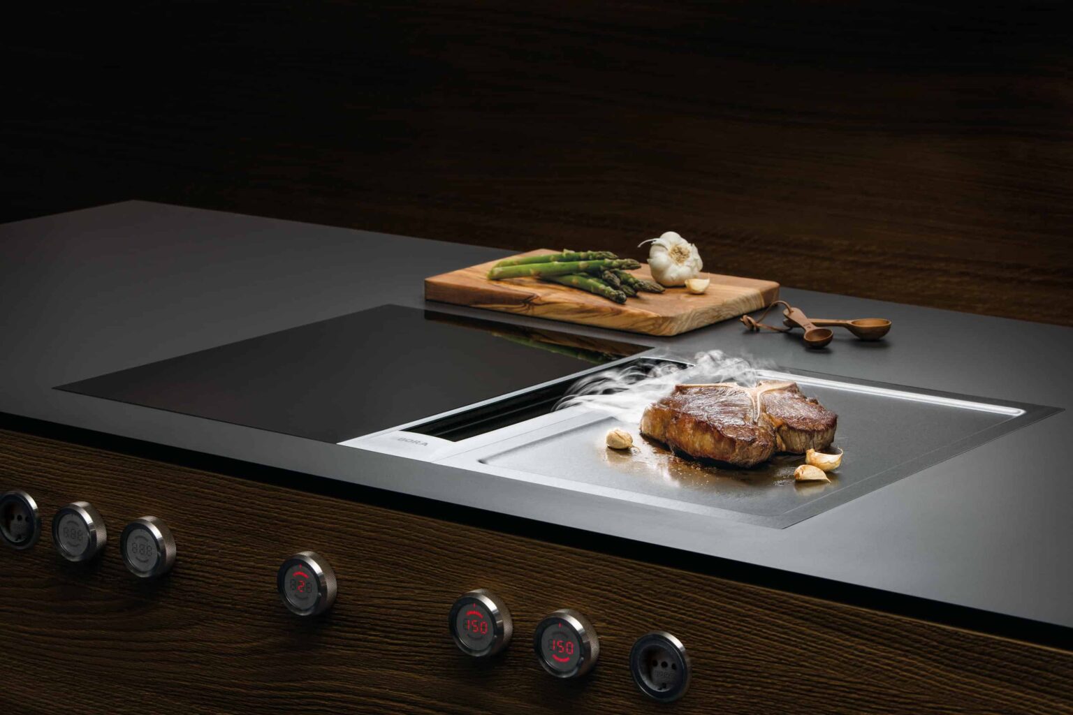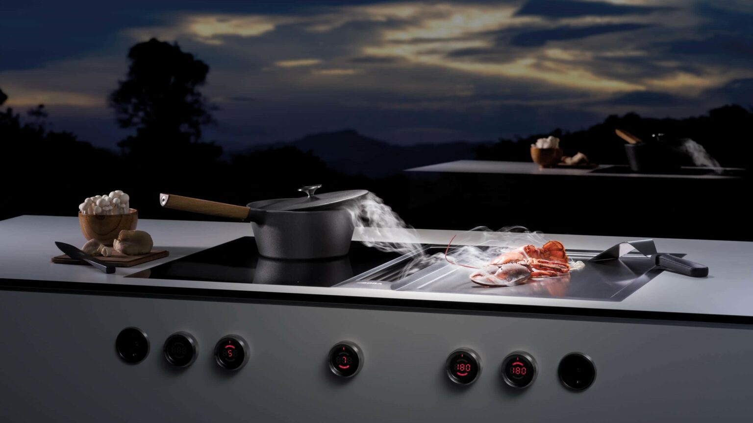 A moduláris felépítés nemcsak esztétikai szabadságot ad, hanem technológiai előnyt is: a főzőlapok önállóan szabályozhatók, de a rendszer egységként működik – a páraelszívóval való intelligens kommunikációnak köszönhetően az energiafelhasználás és a légáramlás mindig optimális marad.