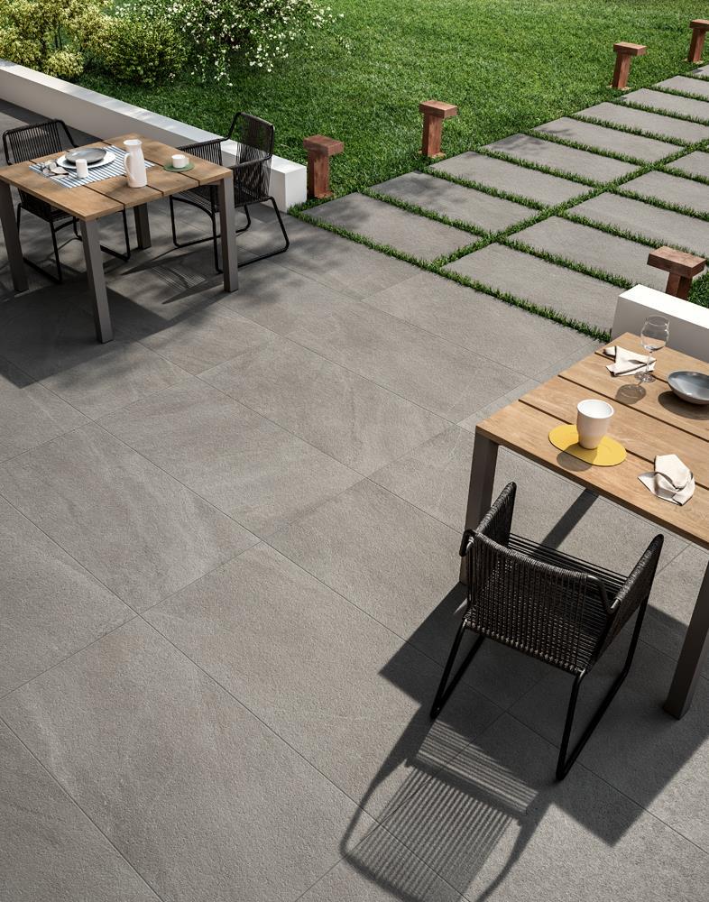 A kollekcióban található 20 mm vastag kültéri lap is, amely teraszok, járdák és egyéb külső felületek burkolására ideális. A három vastagsági szinttel a Limestone teljes körű megoldást nyújt, hiszen a belső és külső terek harmonikusan egységesíthetők vele, ugyanabból a kollekcióból választva.