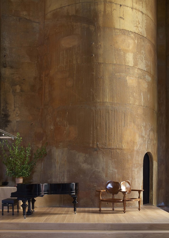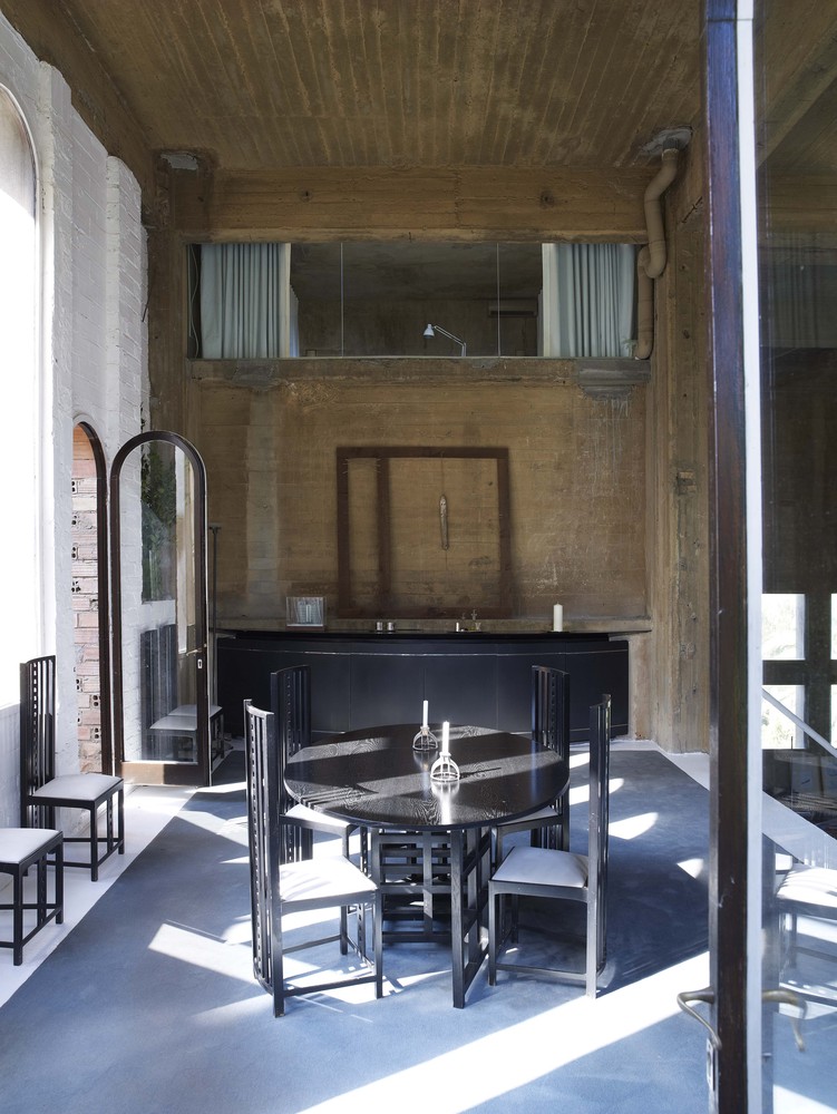 A belső terek hatalmasak, mégis intimek – a fény, a térarányok és az üres felületek játéka meleg, meditatív atmoszférát teremt. Ahol egykor gépek zúgtak, ma hatalmas könyvespolcok, műtárgyak és lépcsőspirálok adják a ritmust.