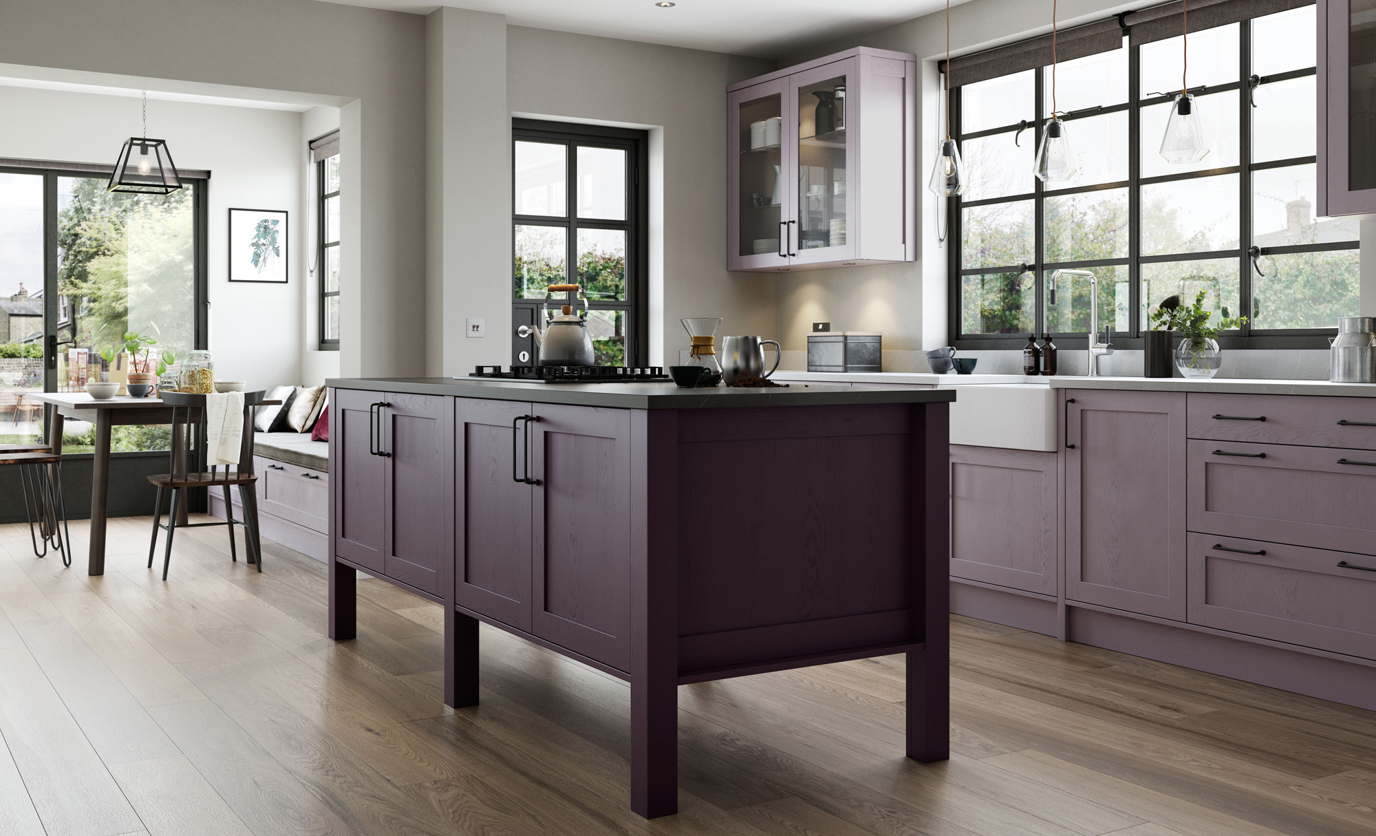 A Dark Lavender különösen jól harmonizál a puha szürkékkel, meleg homokszínekkel vagy finom mentazöld árnyalatokkal, így a bútorok és textilek kiemelésére, valamint a tér karakterének erősítésére tökéletes.