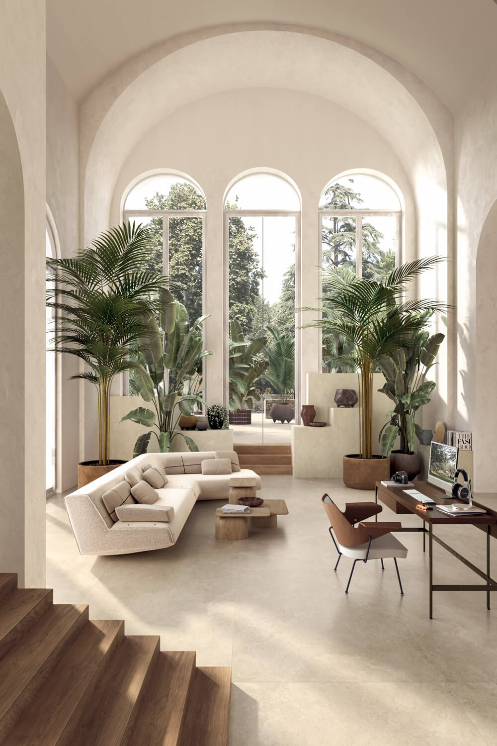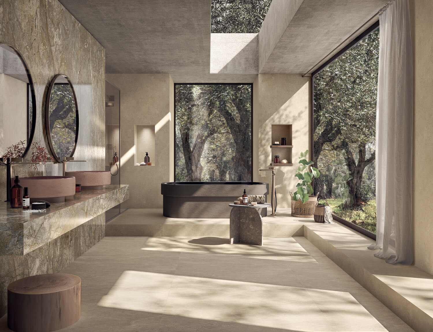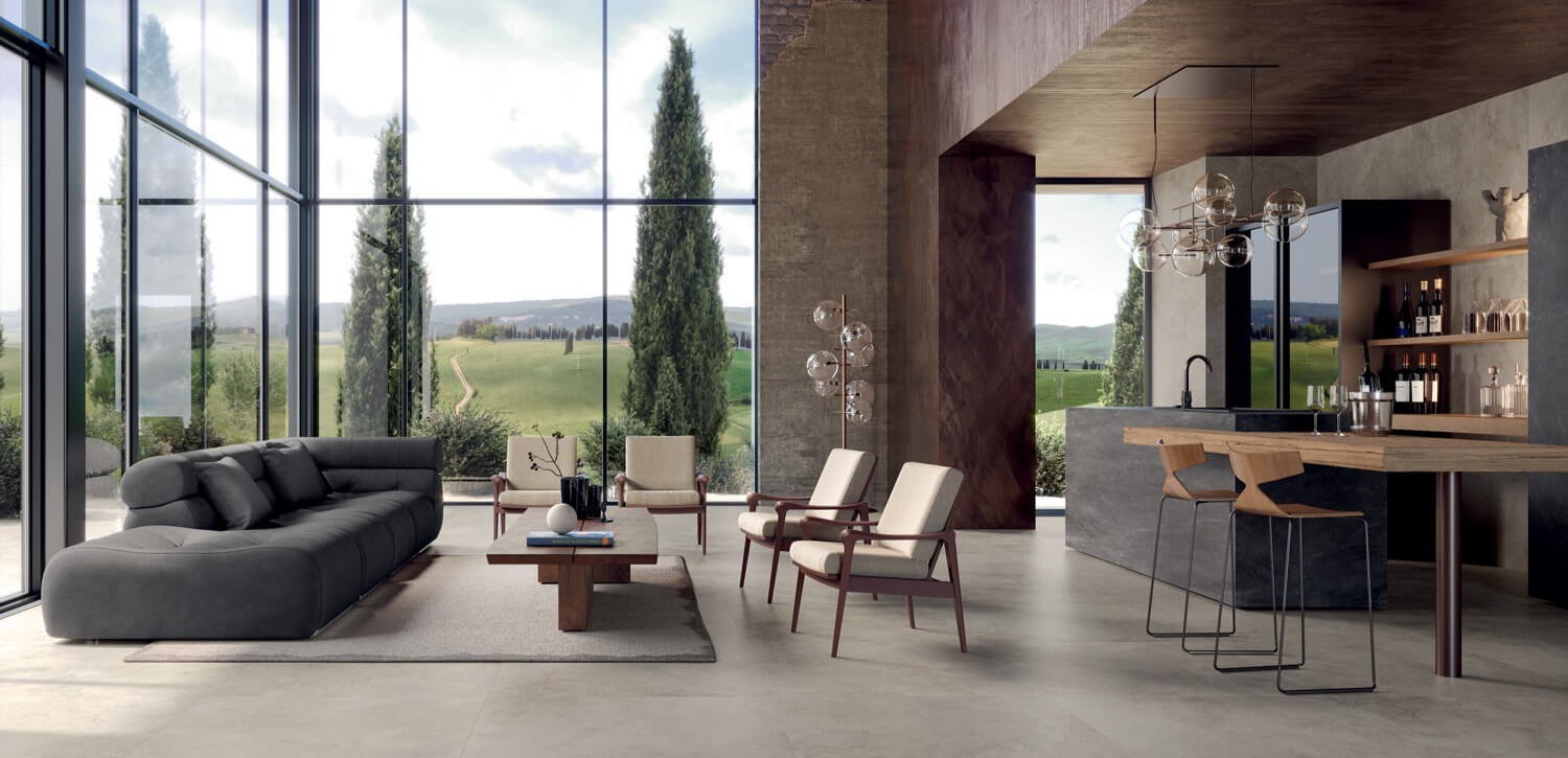 Ezek a nagyméretű gres lapok vizuálisan tágítják a teret, légiessé teszik az enteriőröket és modern dinamizmust visznek az egyébként klasszikus mediterrán lágysága mellé.